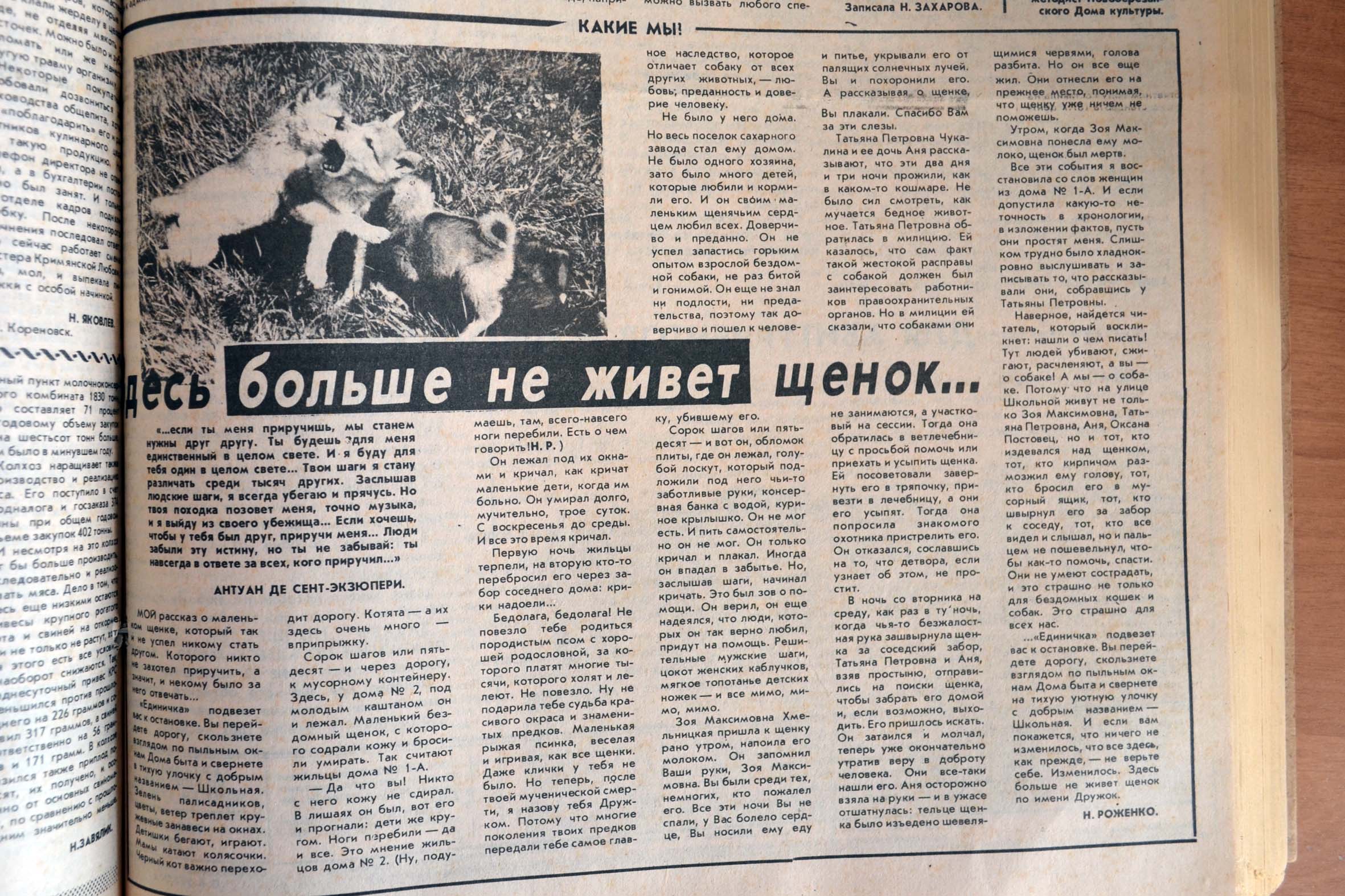 Газета «Кореновские вести» за 25.07.1991 года. Автор Нина РОЖЕНКО.
