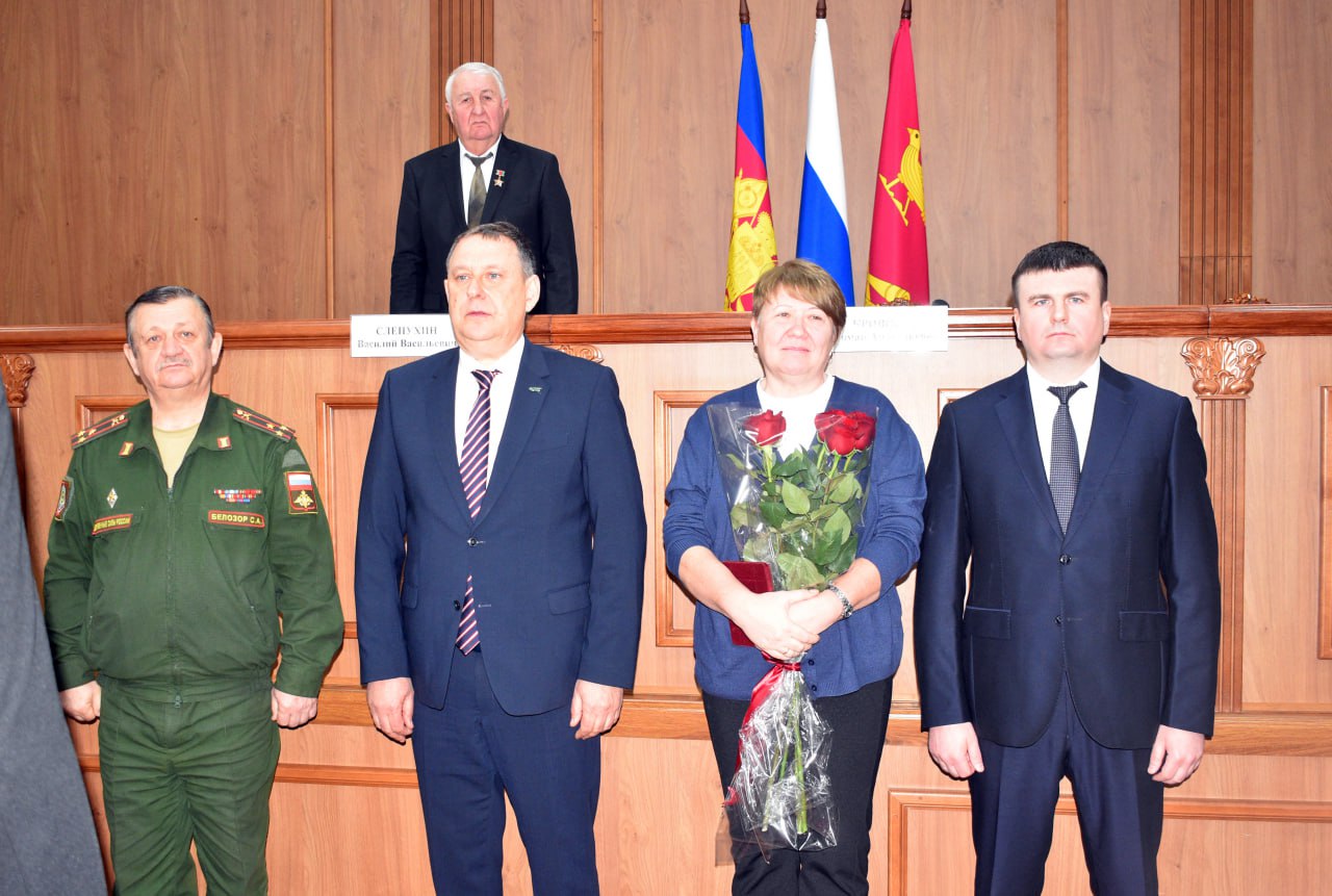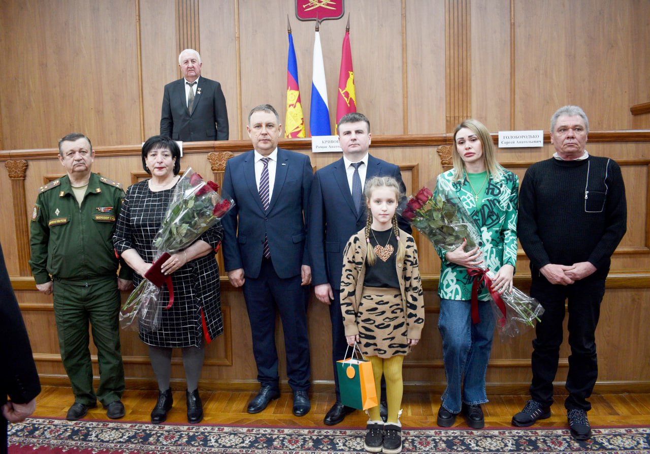 Мероприятие продолжилось церемонией вручения государственных наград. Эту миссию выполнили руководитель Департамента ветеринарии края Роман Кривонос, глава района Сергей Голобородько, военный комиссар Кореновского и Выселковского районов Сергей Белозор. Ордена Мужества (посмертно) были вручены семьям погибших героев: - старшего лейтенанта Иралимова Виктора Алексеевича, - рядового Крыгина Владимира Александровича, - ефрейтора Лысак Никиты Сергеевича, - гвардии младшего сержанта Палиенко Сергея Валентиновича, - рядового Упырь Александра Юрьевича. Имена наших воинов останутся в истории района, вечная память защитникам Отечества!