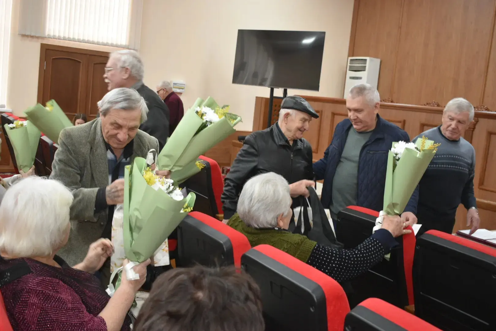 Началось мероприятие с вручения цветов и подарков: поздравляли мужчин с прошедшим Днем защитника Отечества, женщин — с наступающим Международным женским днем, именинников — с днем рождения.