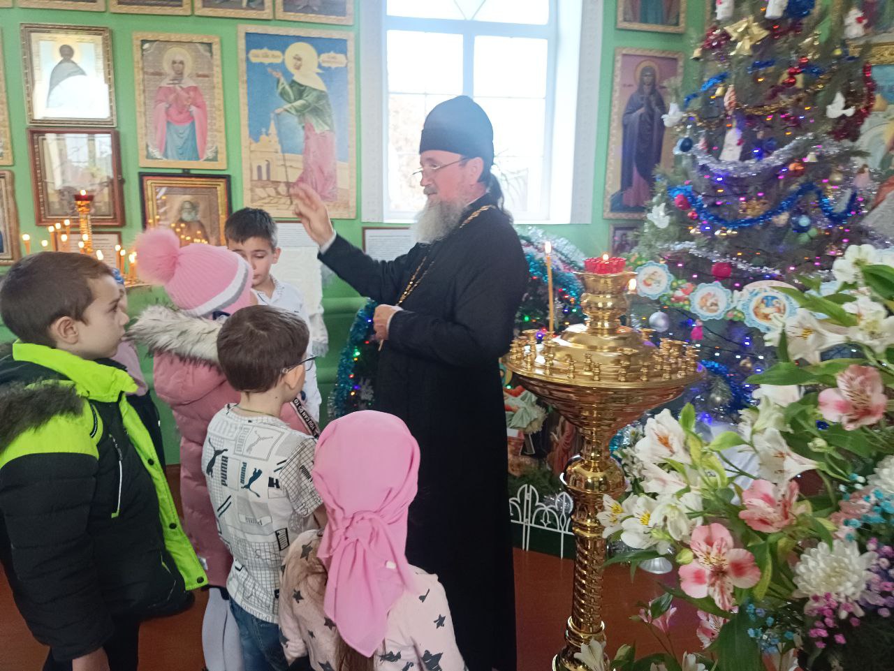 После Богослужения настоятель храма протоиерей Александр Панюта рассказал ребятам о значении великого и радостного праздника Рождества Христова, о рождении Богомладенца, который пришел в этот мир «нас ради человек и нашего ради спасения», являя величайший пример победы над злом.